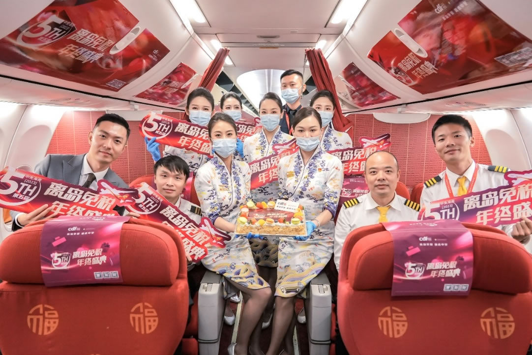 中免集團(tuán)聯(lián)動(dòng)航空資源推出主題航班活動(dòng),帶來了沉浸式的新鮮有趣互動(dòng)體驗(yàn)。11月15日,cdf海口國際免稅城聯(lián)合cdf??谌赵聫V場(chǎng)免稅店、cdf海口美蘭機(jī)場(chǎng)免稅店,聯(lián)動(dòng)海南航空,于HU7782北京-??诤桨嗌祥_展主題航班活動(dòng),通過營造節(jié)慶氛圍,開展互動(dòng)問答等趣味活動(dòng),與機(jī)上旅客積極互動(dòng),并予以乘坐該航班旅客相應(yīng)購物權(quán)益。cdf三亞國際免稅城也在HO1747南京—三亞的吉祥航空主題航班上為乘客精心準(zhǔn)備了主題蛋糕及消費(fèi)權(quán)益,在豐富乘機(jī)體驗(yàn)的同時(shí),更增強(qiáng)旅客對(duì)于免稅及活動(dòng)的了解。