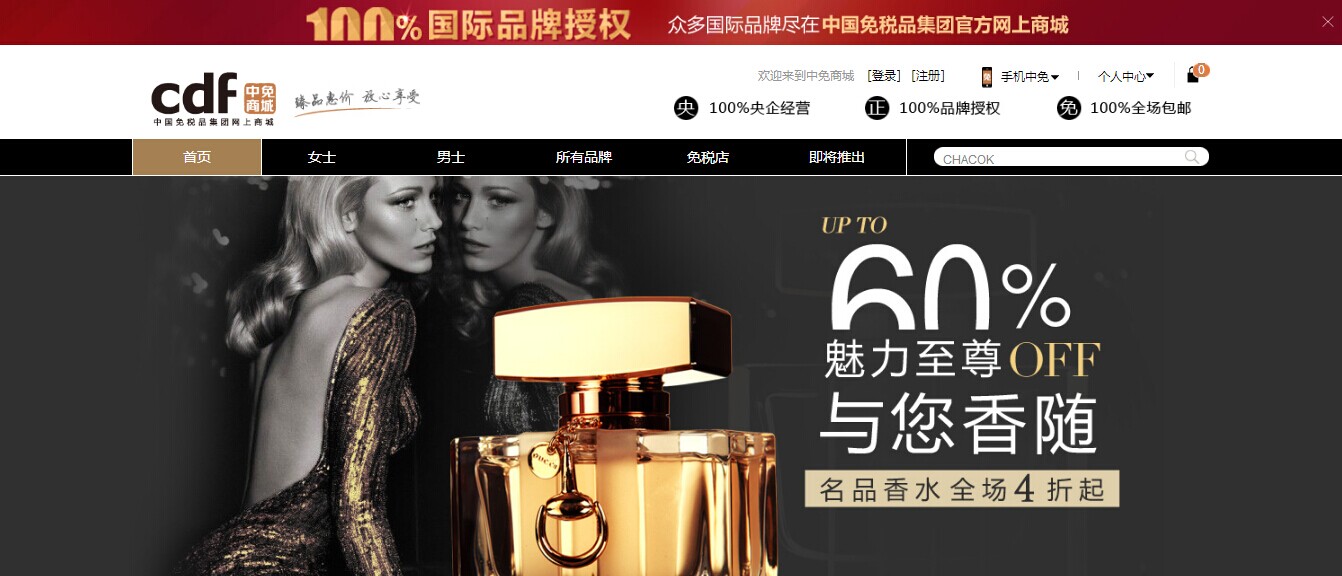 網(wǎng)站LOGO以“cdf”和“中免商城”漢字為組合,體現(xiàn)了中免集團與中免商城的一脈相傳。網(wǎng)站從整體架構(gòu)、風(fēng)格設(shè)計、圖片展示、購物流程等方面精雕細(xì)琢,力求展示中免商城的優(yōu)勢和有別于其它購物網(wǎng)站的差異化特征。