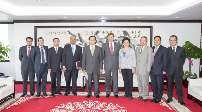 9月1日,集團張學武董事長、姜巖總經(jīng)理在香港會晤了到訪的摩根大通亞太區(qū)主席Nicolas Aguzin先生一行,雙方就開展進一步合作等事宜進行深入探討。張逢春總會計師、許慕韓副總經(jīng)理以及集團財務部相關(guān)人員陪同會見。