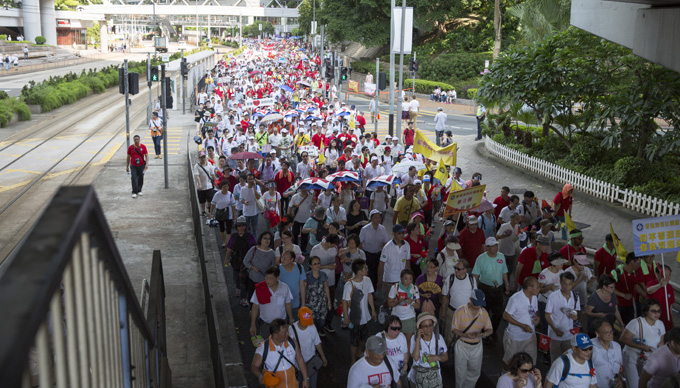 這次大游行,是愛國愛港力量十幾年來最大的一次游行集會活動。集團在港員工過去一次性參加游行集會的人員都在300人左右,在香港中企協(xié)和集團職工聯(lián)誼會的倡議和號召下,這次有800余名員工和家屬參加,為8.17大游行壯舉貢獻了港中旅人的一份力量。(集團職工聯(lián)誼會)