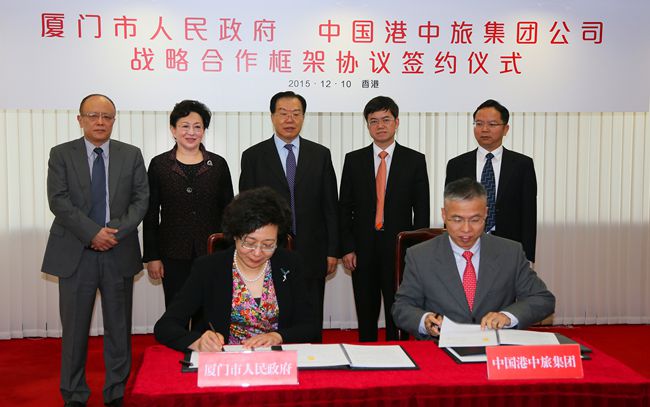 12月10日,集團(tuán)張學(xué)武董事長、姜巖總經(jīng)理在集團(tuán)會見了廈門市人民政府裴金佳市長一行,雙方就深化合作進(jìn)行會談,并舉行《廈門市人民政府中國港中旅集團(tuán)戰(zhàn)略合作框架協(xié)定》簽字儀式。